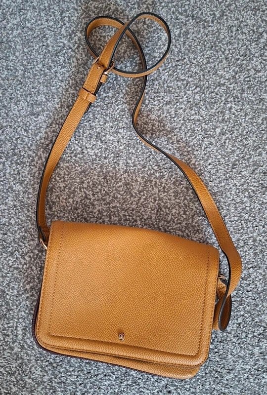 The Accessorize Mustard Triple Compartment Cross-Body Bag is made from faux leather.