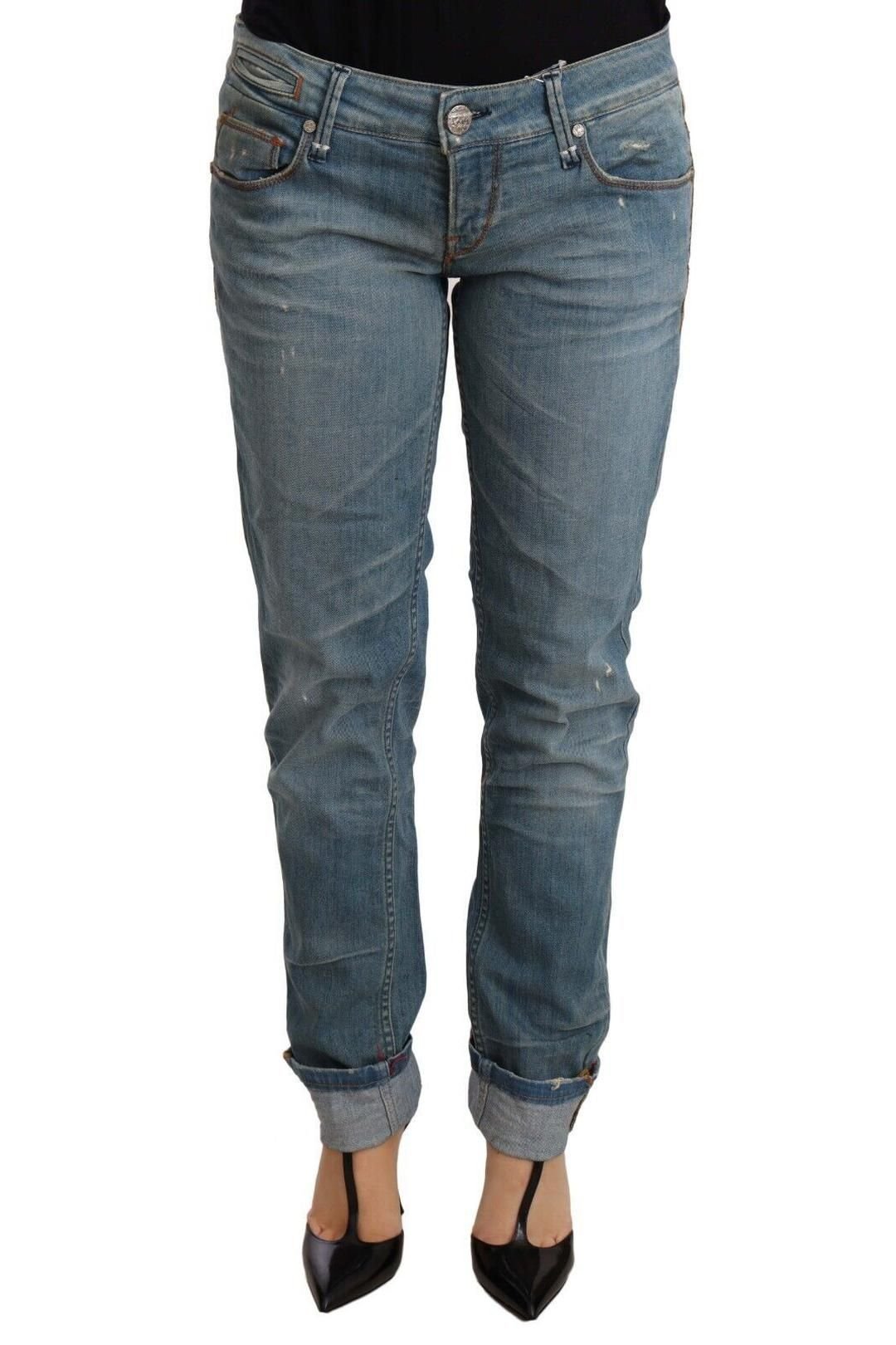 Stylish blue washed cotton trousers by ACHT. Featuring a regular fit and folded hems, these jeans are perfect for casual wear. Made from comfortable cotton, they offer a button fly and logo details.