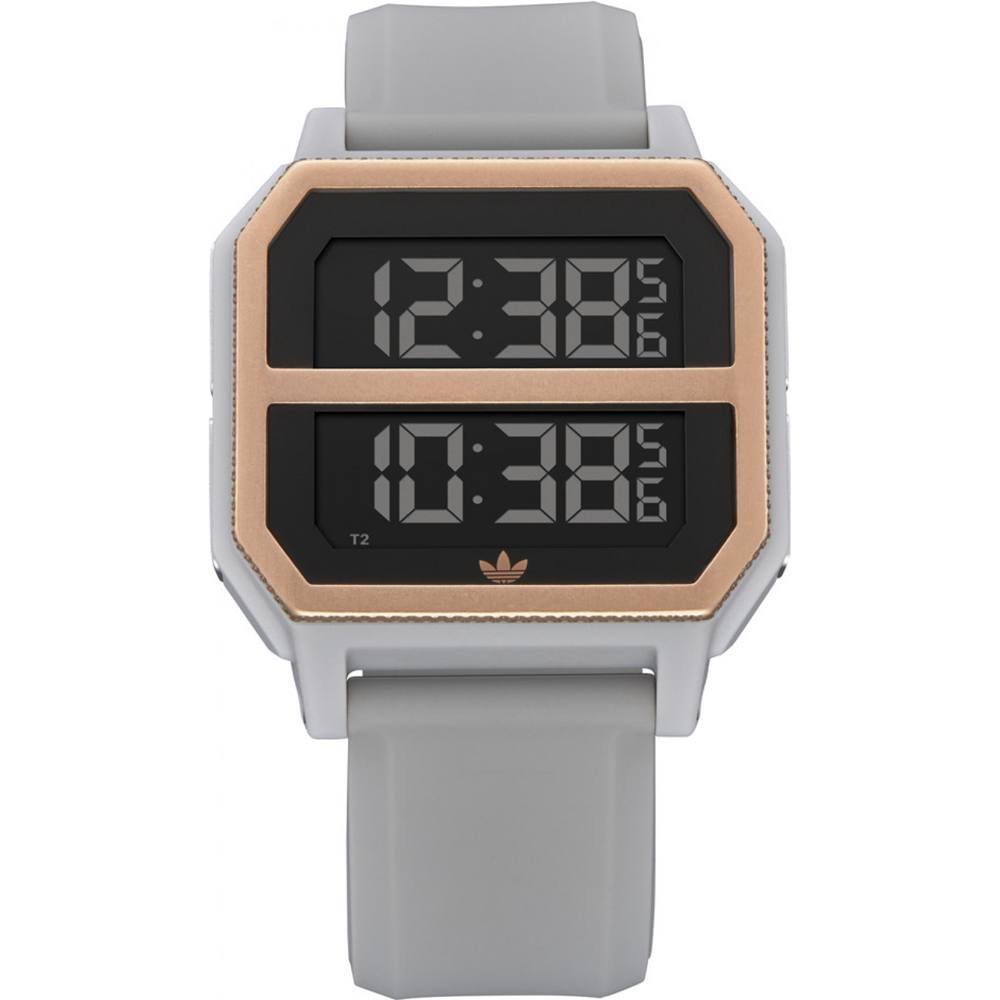 Stylish adidas Originals watch in grey with a digital display. Features a digital face, dual time zone, and a digital chronograph. Perfect for casual and smart-casual occasions.