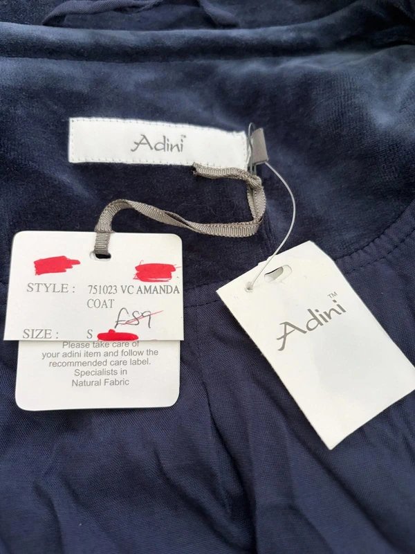 The Adini Velvet Jacket Coat in Blue is available in sizes S.
