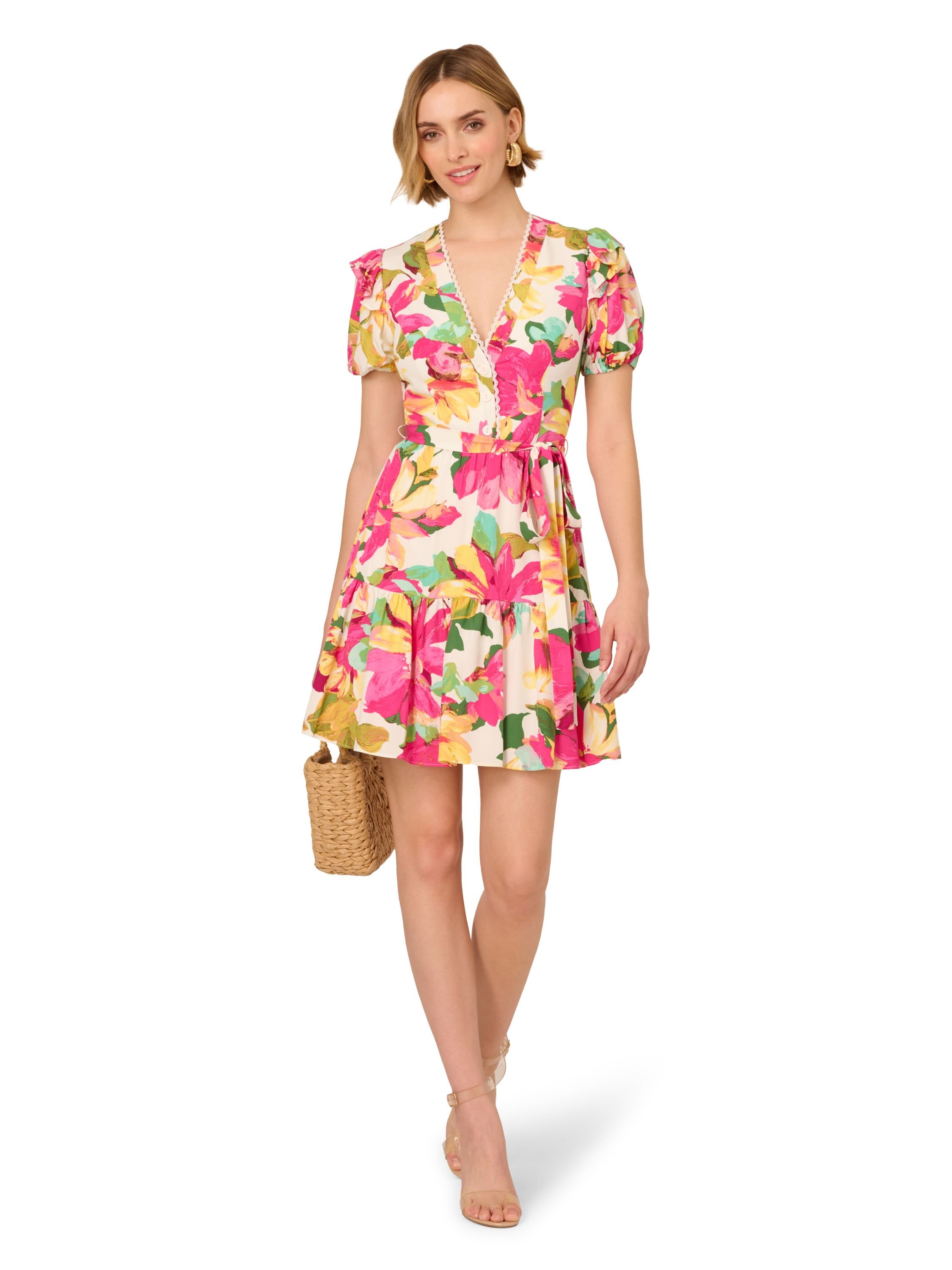 The Adrianna by Adrianna Papell Floral Mini Dress in White is ideal for casual, beach, date-night.