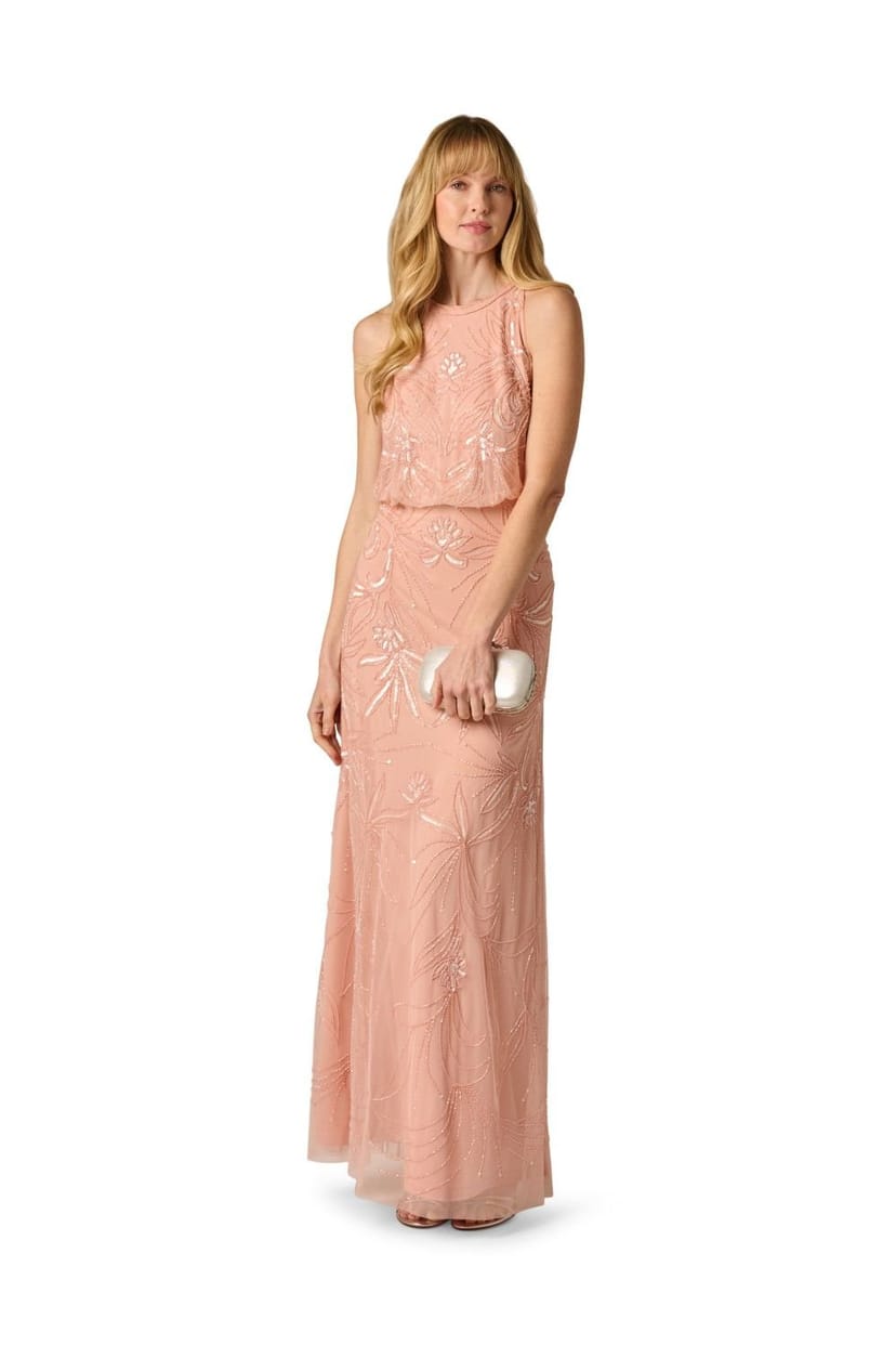 The Adrianna Papell Pink Bead Blouson Long Dress is ideal for evening, party, wedding-guest.