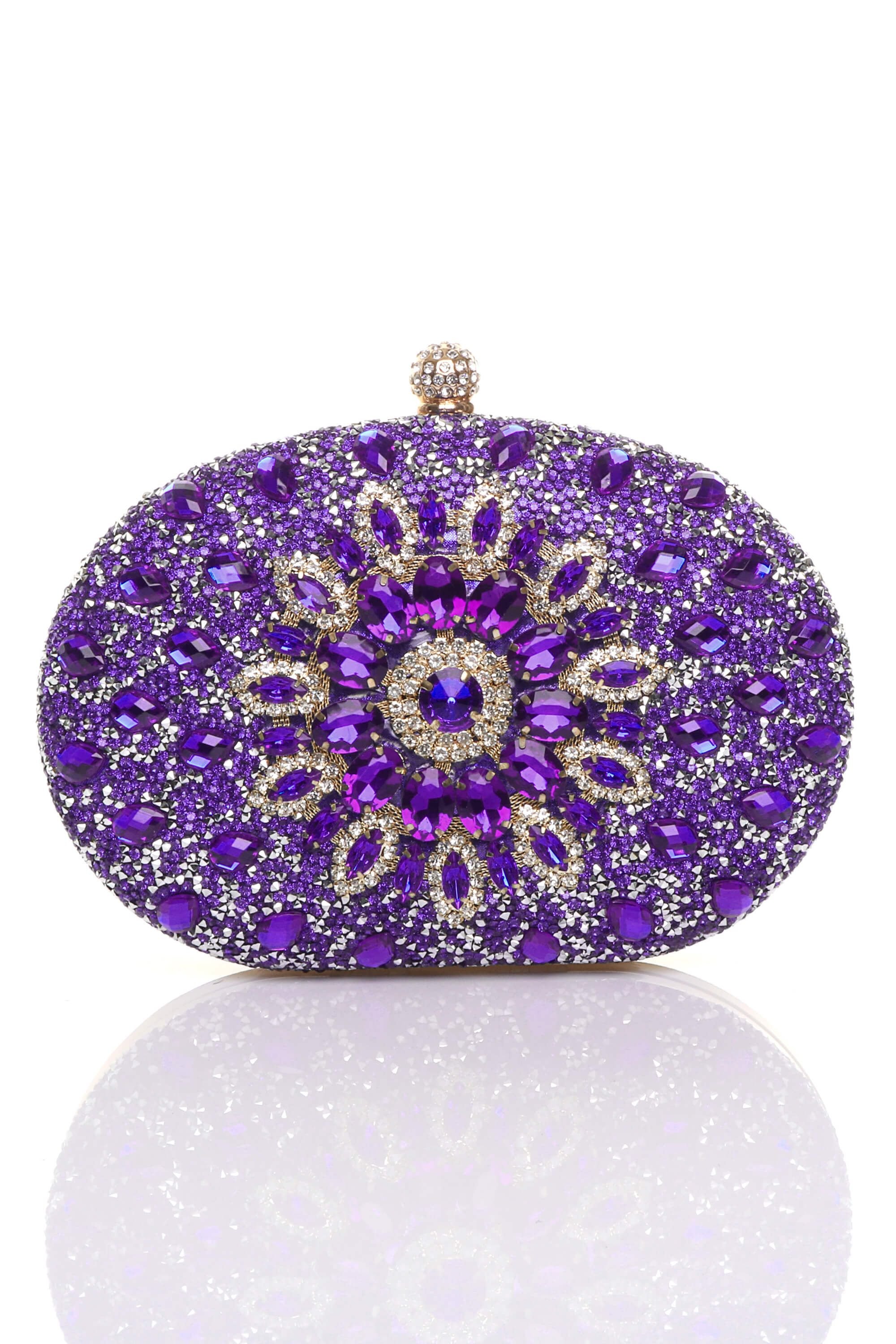 The AJVANI Aubergine Diamante Embellished Prom Clutch is ideal for evening, party, prom.
