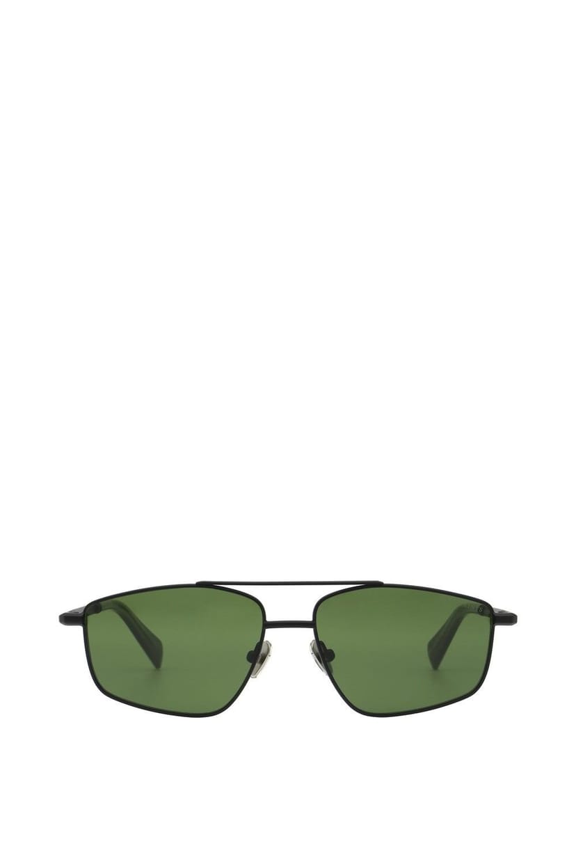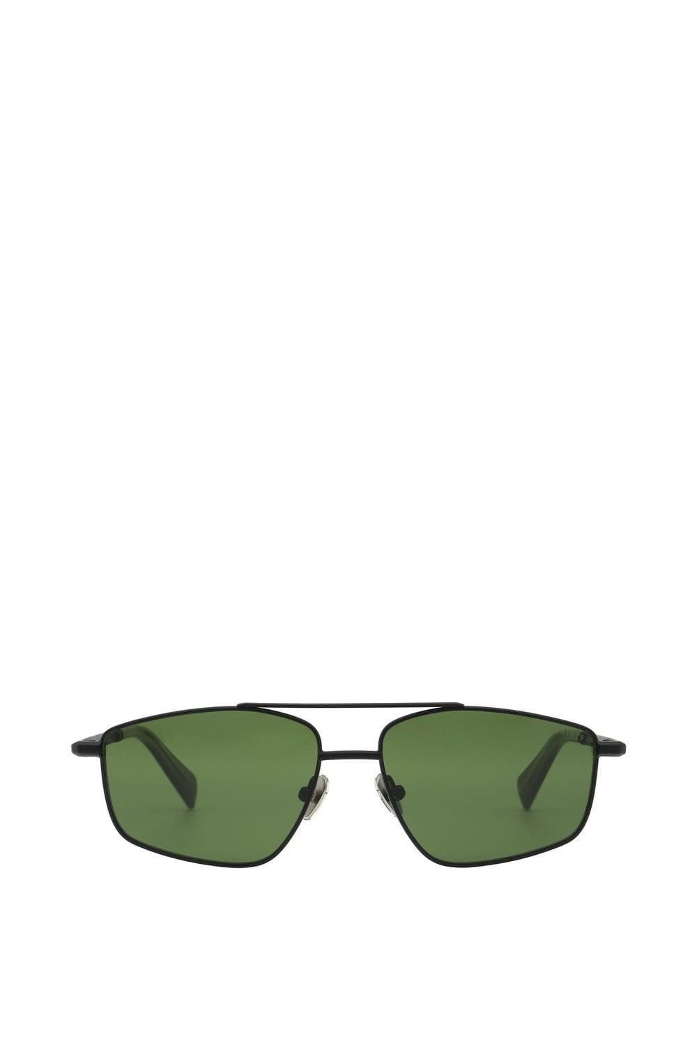 Sleek pilot-shaped sunglasses in matte black with green lenses. Featuring All Saints ramskulls engraved on the nosepads, these sunglasses offer a bold yet understated look.
