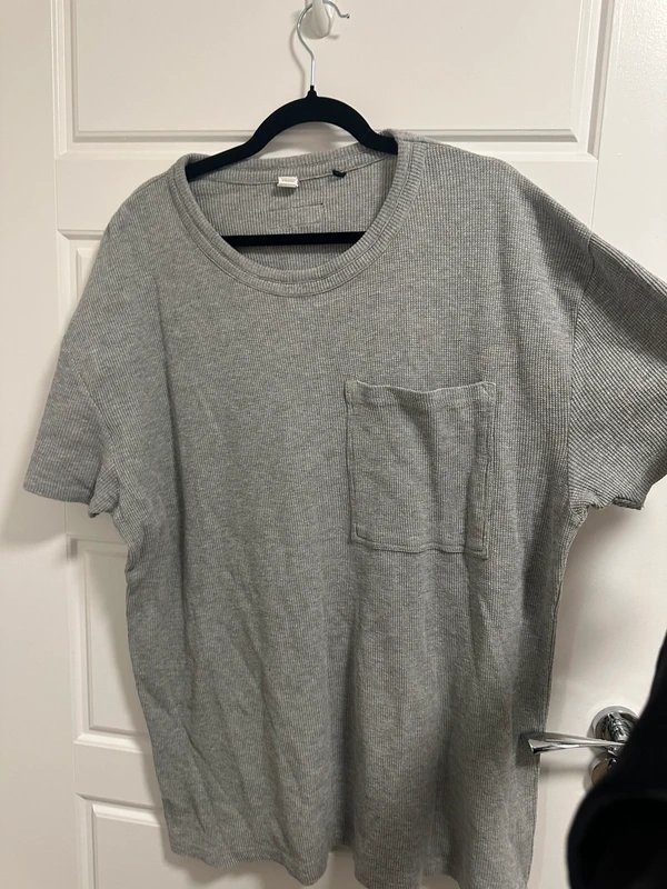 The Alphalete Grey Gym Top is available in sizes L.
