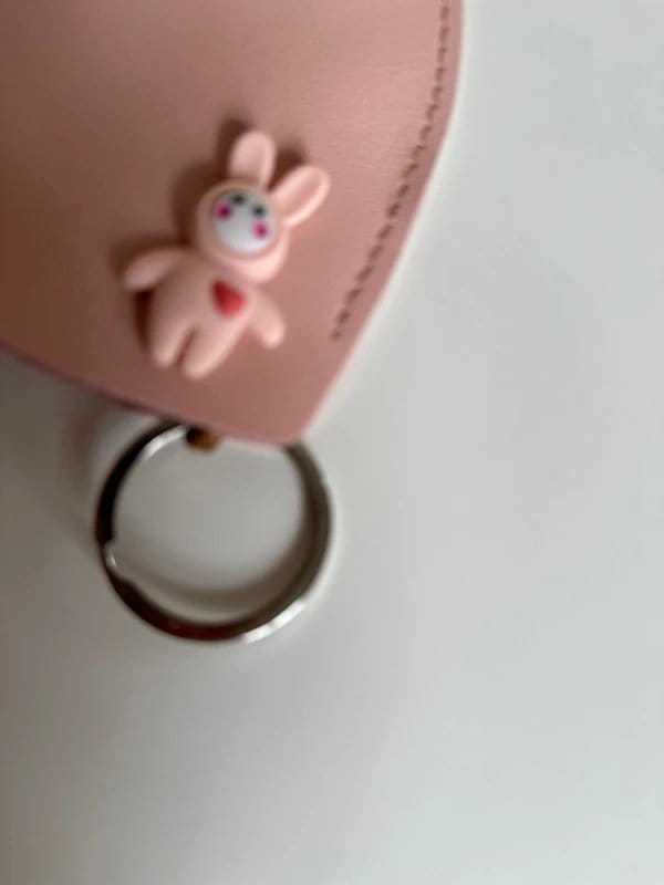 Charming rose pink heart-shaped car key case from Amazon. Made from soft leather, this key case features a cute bunny charm with a red heart on its chest. Perfect for adding a touch of cuteness to your keys.