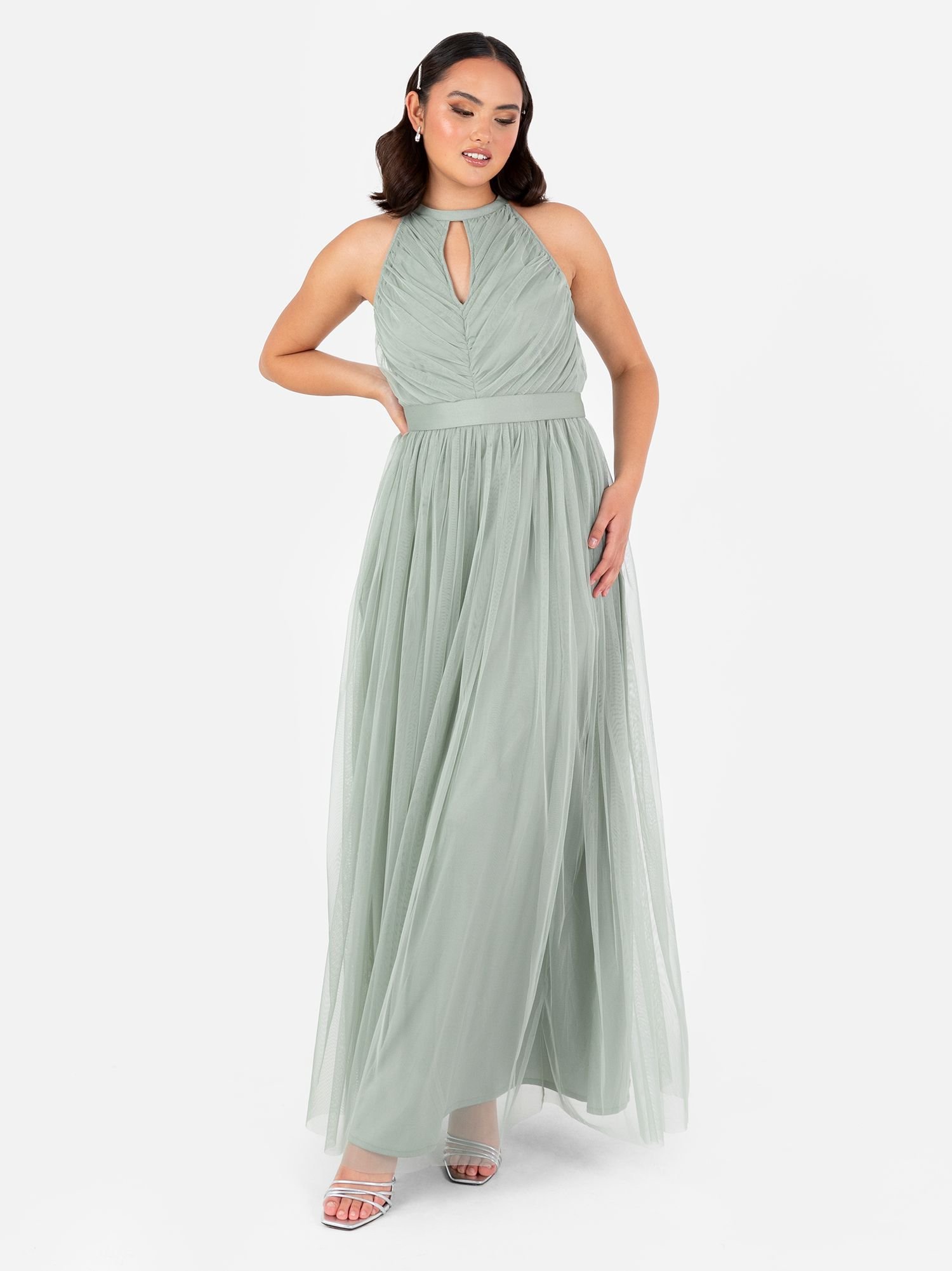 The Anaya with Love Green Satin Halter Maxi Dress is available in sizes 22.