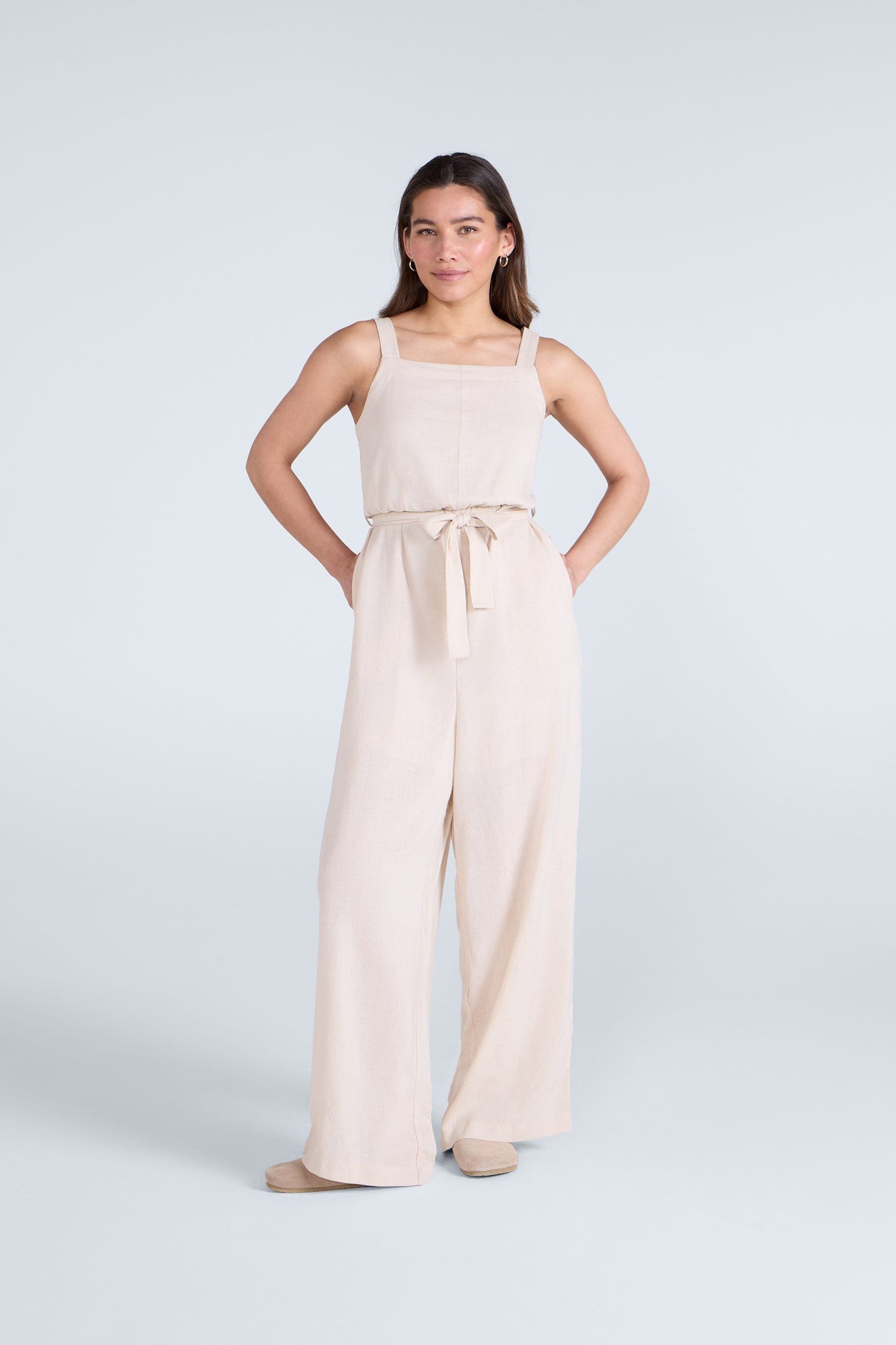 “Pair with tan leather sandals and a wide-brimmed hat for a summery beach look.”