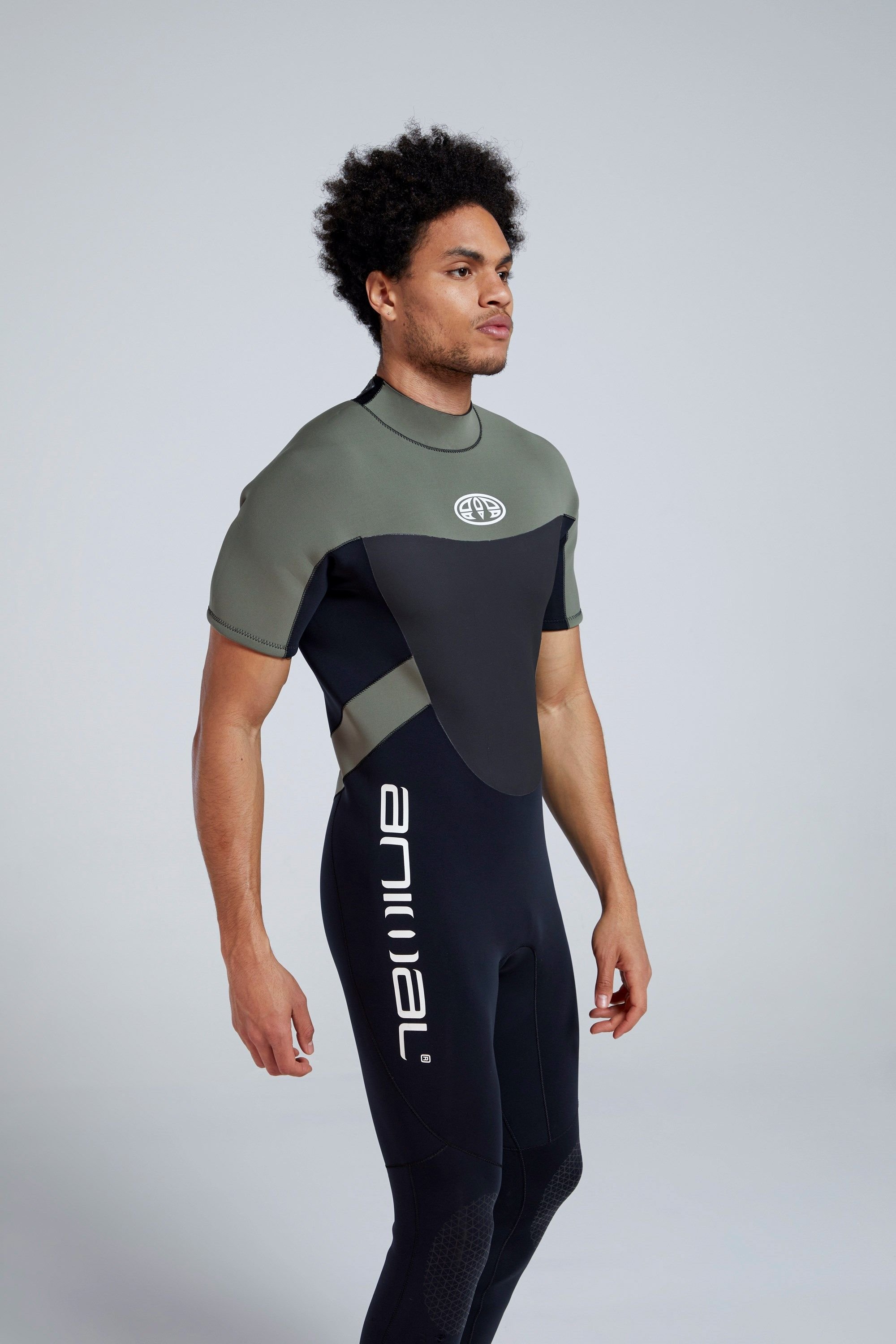 Stylish men's wetsuit by Animal in black with a lightweight, stretchy design. Features a full back zip for easy wear and a short sleeve cut for versatility. Ideal for water sports and outdoor activities.