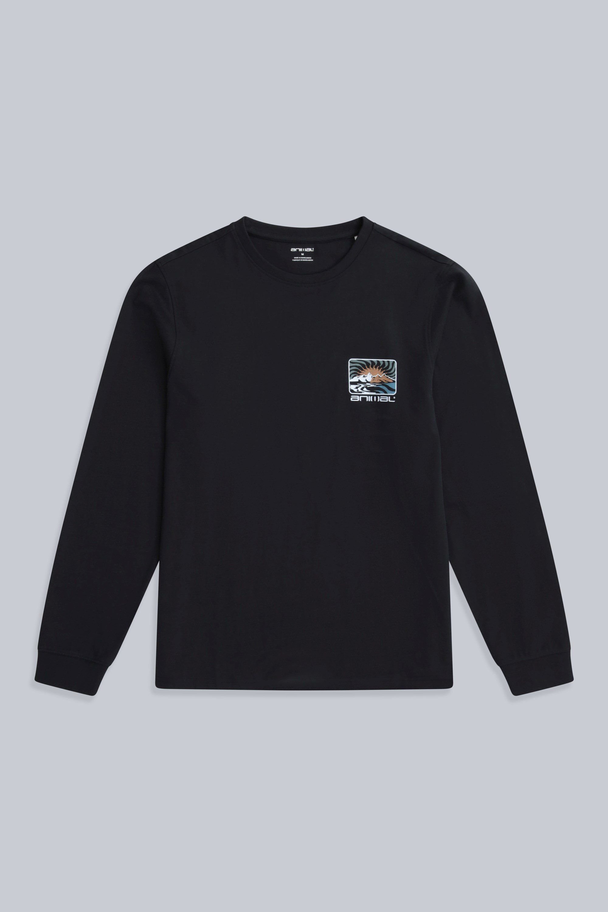The Animal Men's Black Long Sleeve Graphic Cotton T-Shirt is available in sizes XS.