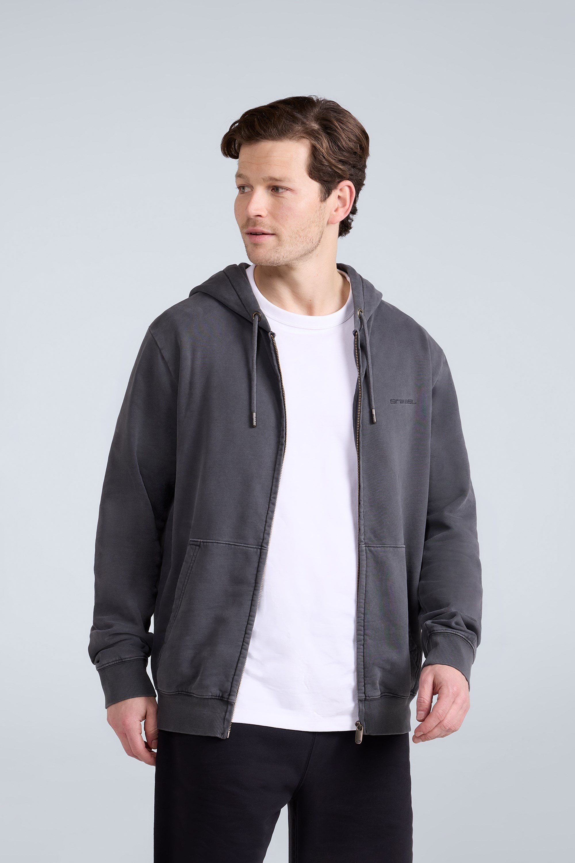Stylish Animal hoodie in charcoal cotton with a zip-through front and ribbed cuffs and hem. Ideal for casual wear and gym training.