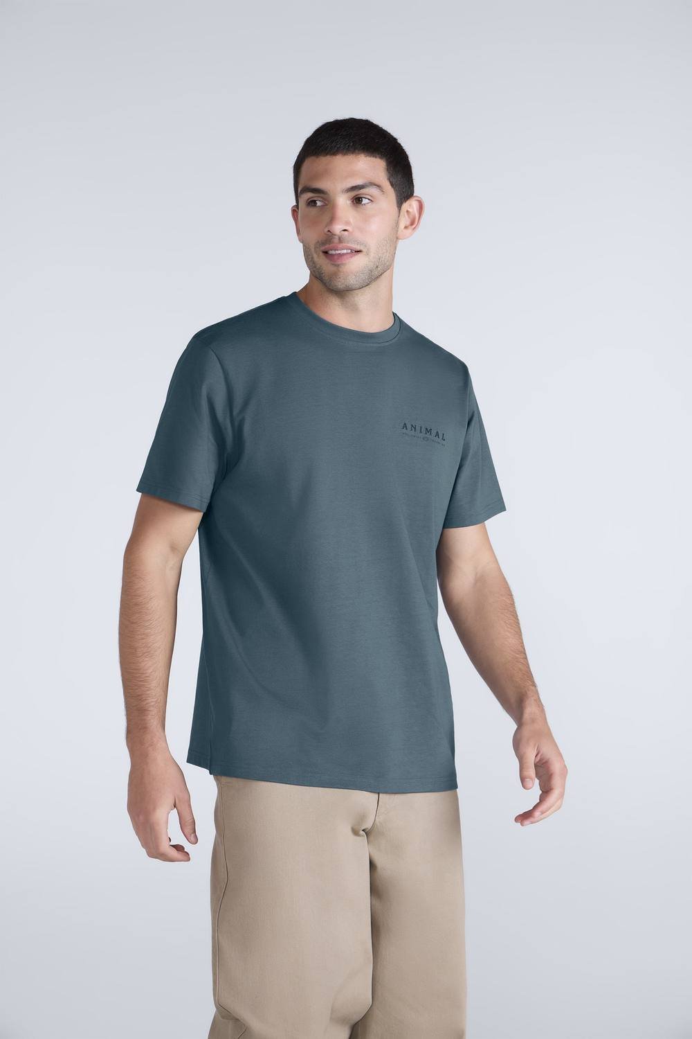 Stylish dark blue cotton t-shirt with a relaxed fit and a subtle Animal logo on the left chest. Perfect for casual wear.