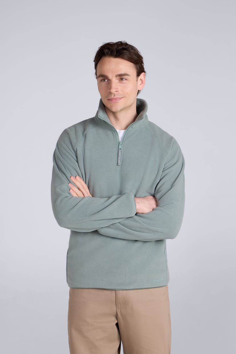 This light blue fleece half-zip sweater from Animal is designed for breathability and warmth. Featuring a snug fit and a half zip for easy wear, it's perfect for layering in cooler weather.