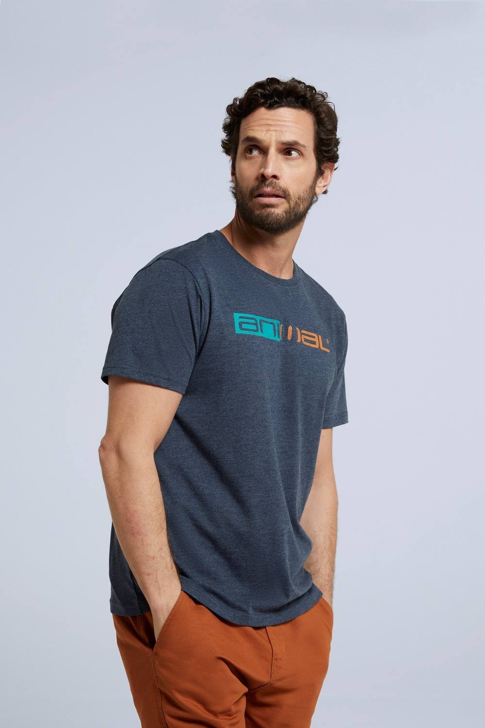 Stylish navy cotton short sleeve t-shirt by Animal. Features a relaxed fit and a branded graphic on the chest. Perfect for casual wear.