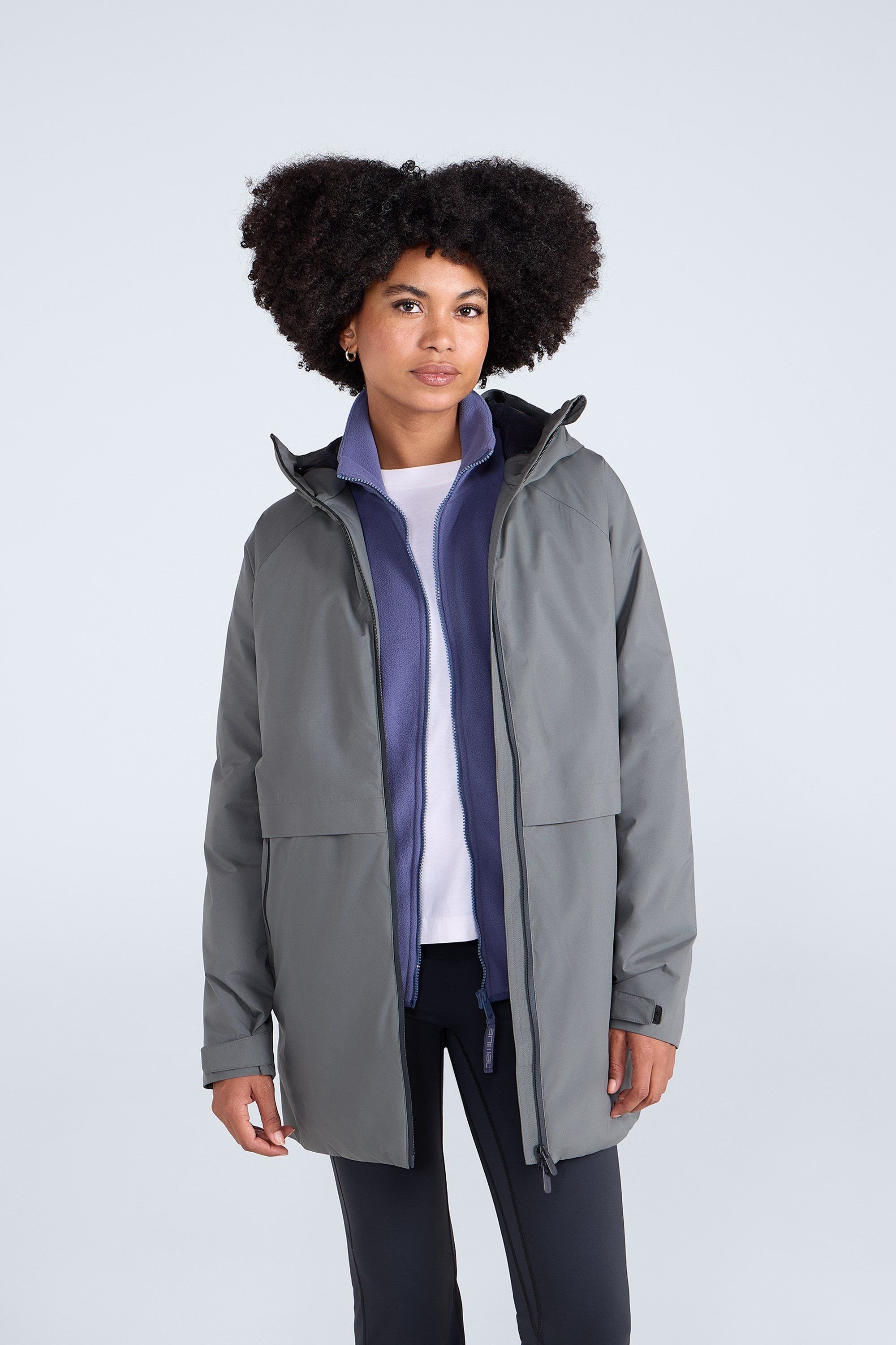 Stylish waterproof jacket in olive featuring a padded hood, full zip, and adjustable hood. Perfect for outdoor activities.