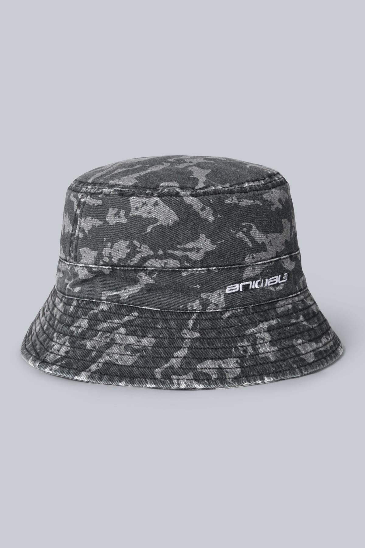 Stylish Animal bucket hat in True Black with a camouflage print. Made from lightweight fabric for comfort, perfect for casual outdoor wear.