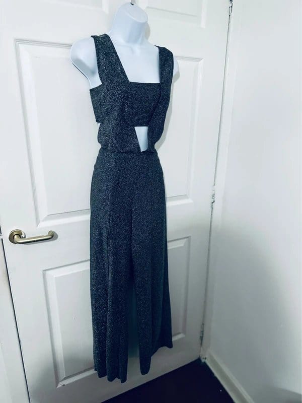 See all outfit ideasThis Ann Summers co-ord is a sparkling charcoal grey bodysuit with matching flared trousers. The bodysuit features a cut-out detail on the back and is ideal for both summer and winter. The trousers have two splits at the front for added flair.