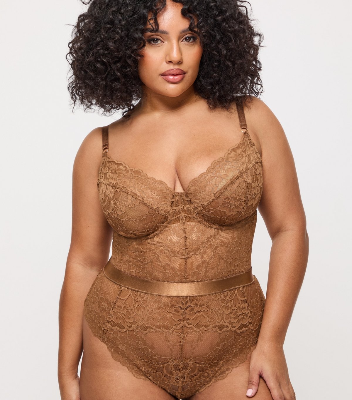 The Ann Summers Cream Lace Bodysuit by New Look is made from lace, satin.