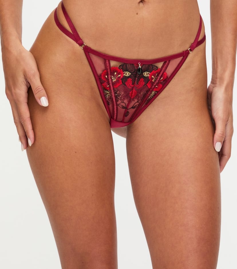This dark red shimmering thong from Ann Summers features a floral mesh design. Perfect for a special occasion or to elevate your everyday look.