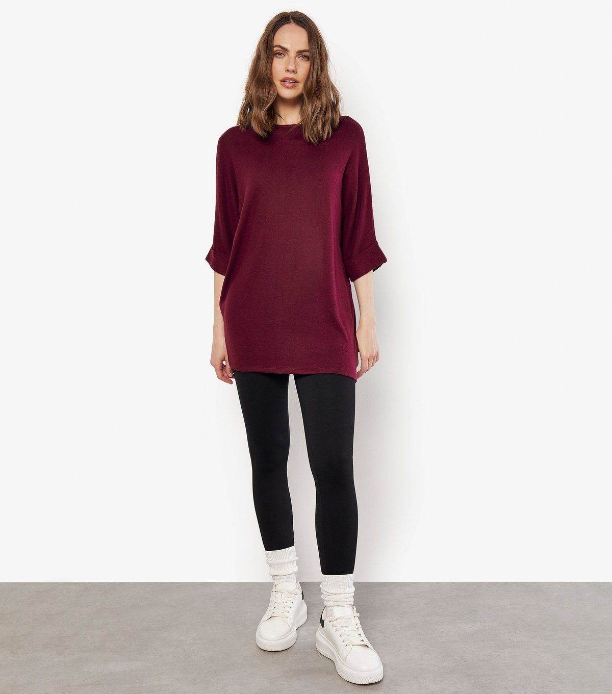 This dark burgundy top from Apricot is perfect for casual looks. Made from soft touch jersey, it offers a relaxed fit and a long length. Ideal for everyday comfort.