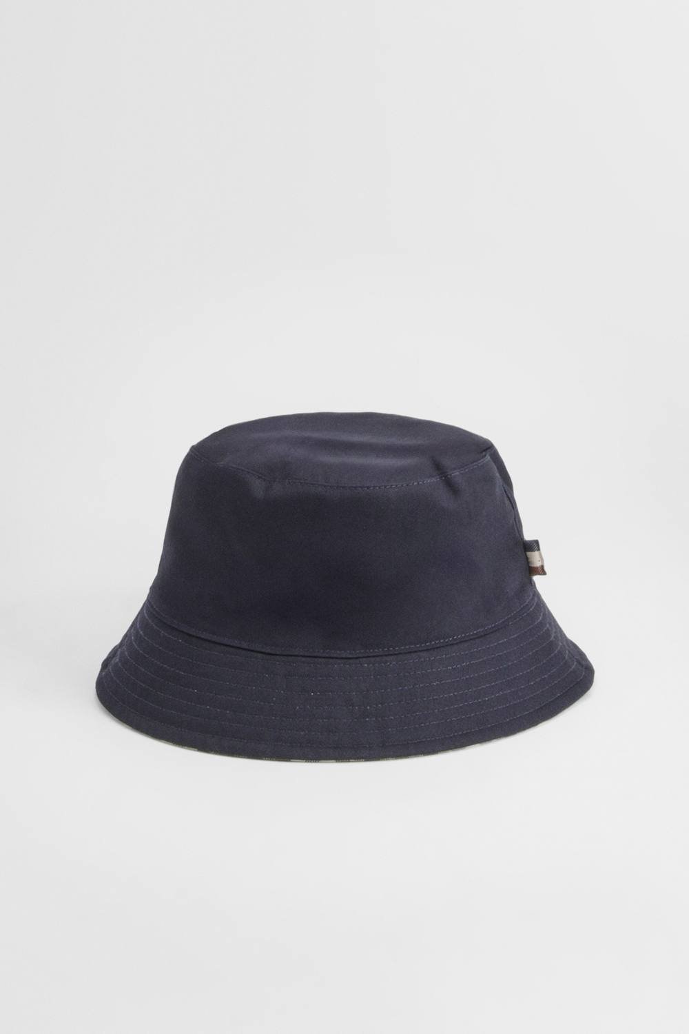 Classic bucket hat silhouette with a structured crown and flat top. Distinctive Aquascutum branded tab detail on the side. Neat topstitching along the brim for added durability. Crafted from pure cotton for breathable comfort.