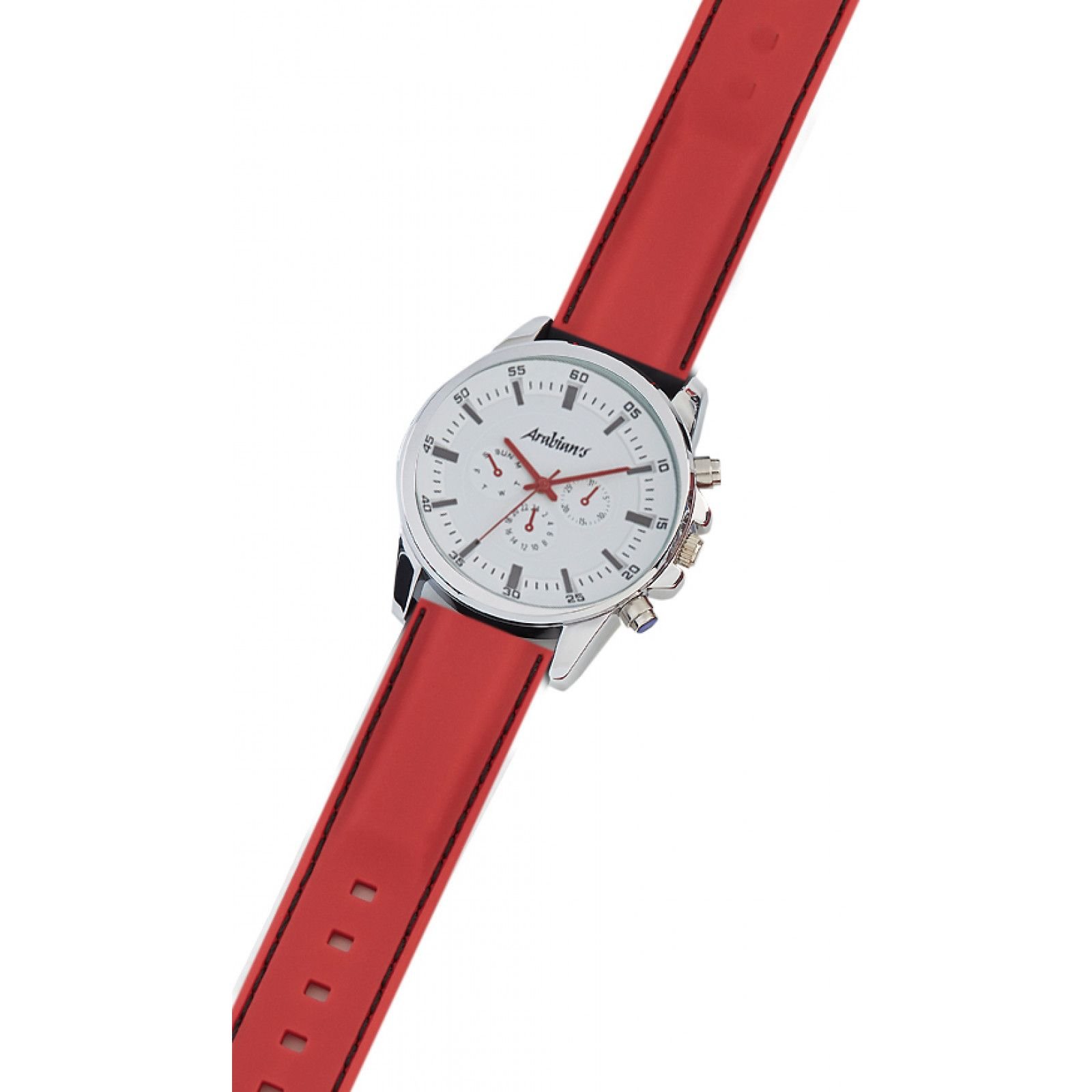 Stylish Arabians men's watch with a red strap and silver-tone case. Features a classic white dial with black numerals and red hands. Perfect for everyday wear.