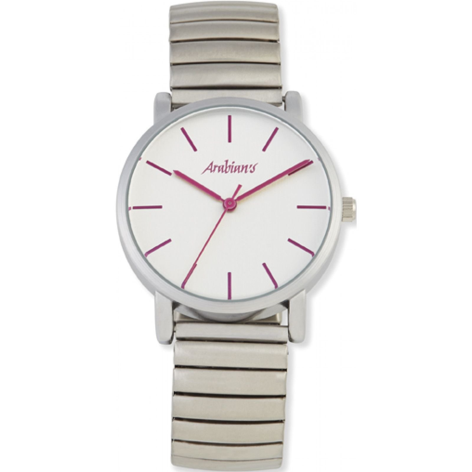 Stylish Arabians men's watch with a silver dial and pink hands. Features a quartz movement for precise timekeeping. Ideal for everyday wear.