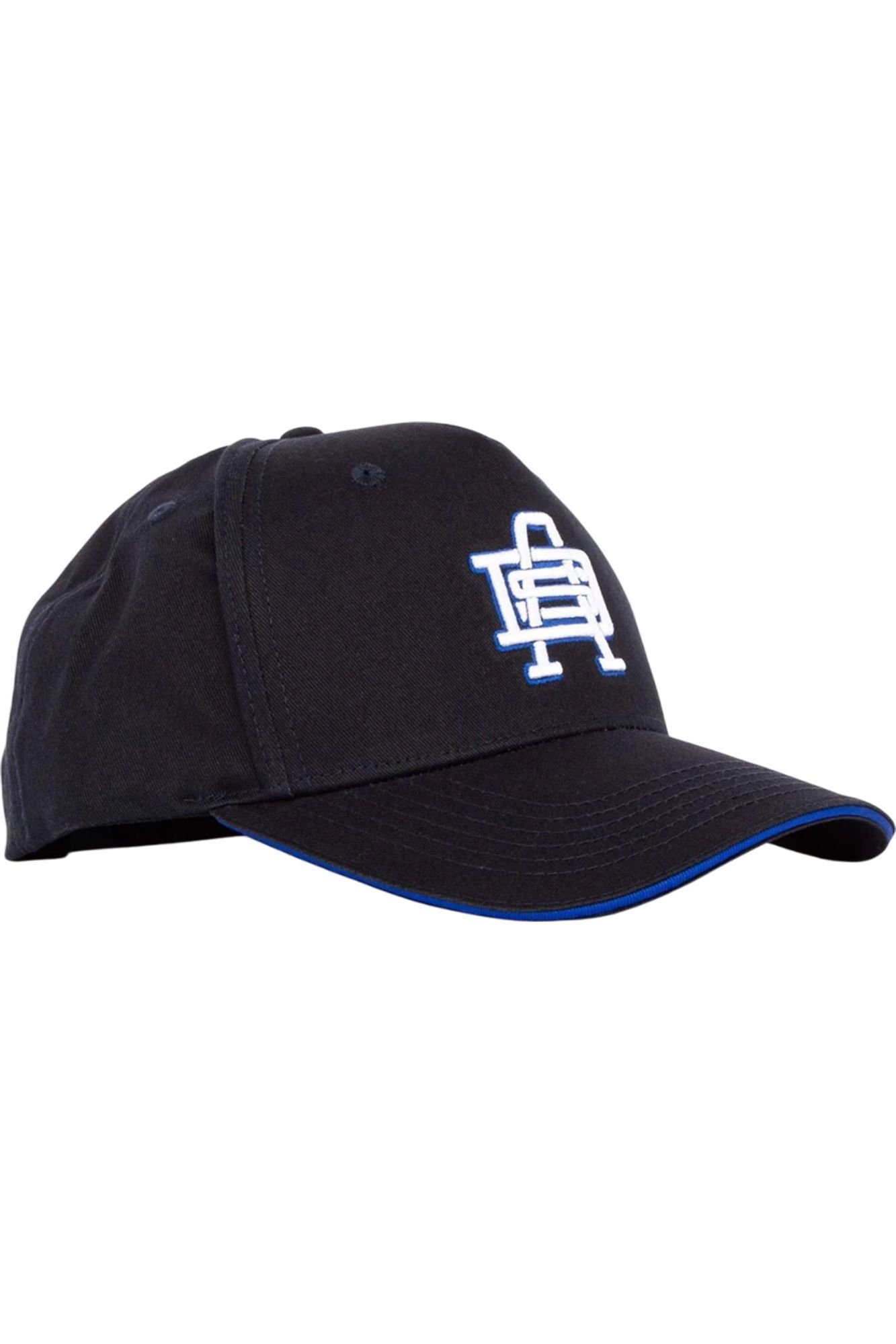 Stylish Navy cap by Archive Design Studios made from 100% cotton. Features a contrast trim, embroidered eyelets, and a curved brim. Perfect for casual wear.