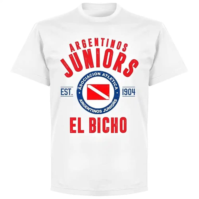 Show your support with this high-quality football t-shirt for adults. Featuring the Argentinos Juniors branding and established year 1904, this white t-shirt is perfect for fans.