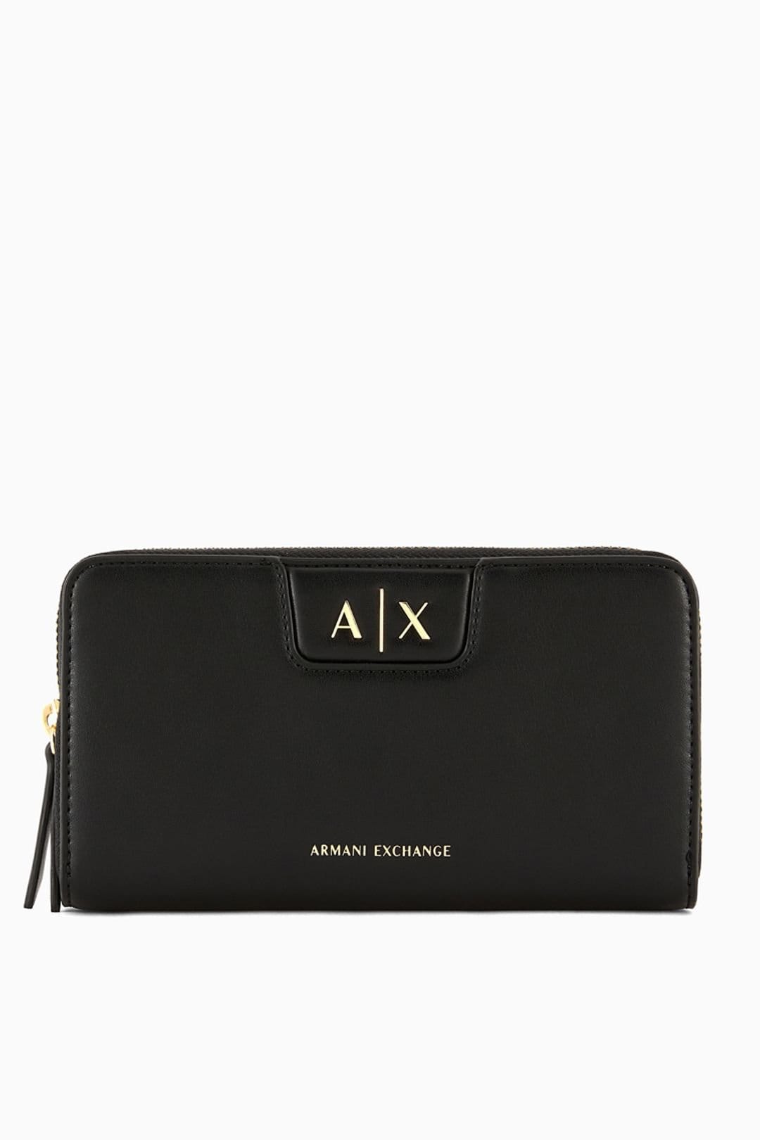 Sleek zip-around design for secure closure and easy access to contents. Distinctive A|X logo hardware on the front flap adds signature style. Streamlined silhouette perfect for everyday organisation. Gold-tone zip detailing creates a refined contrast against the main body.