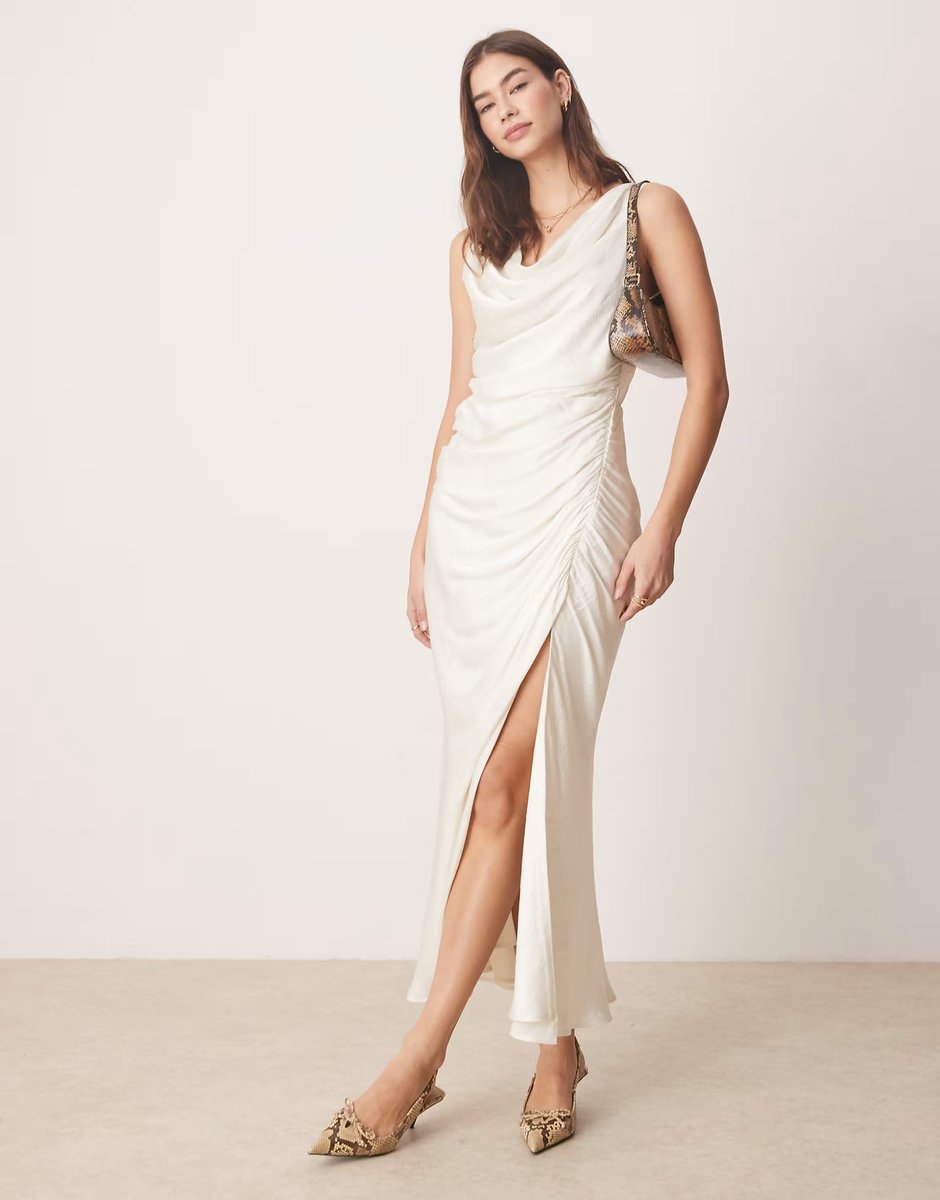 The ASOS Abercrombie & Fitch Cowl Neck Maxi Dress in White is available in sizes XXXL, XXL, XL, XS, L, M, S.