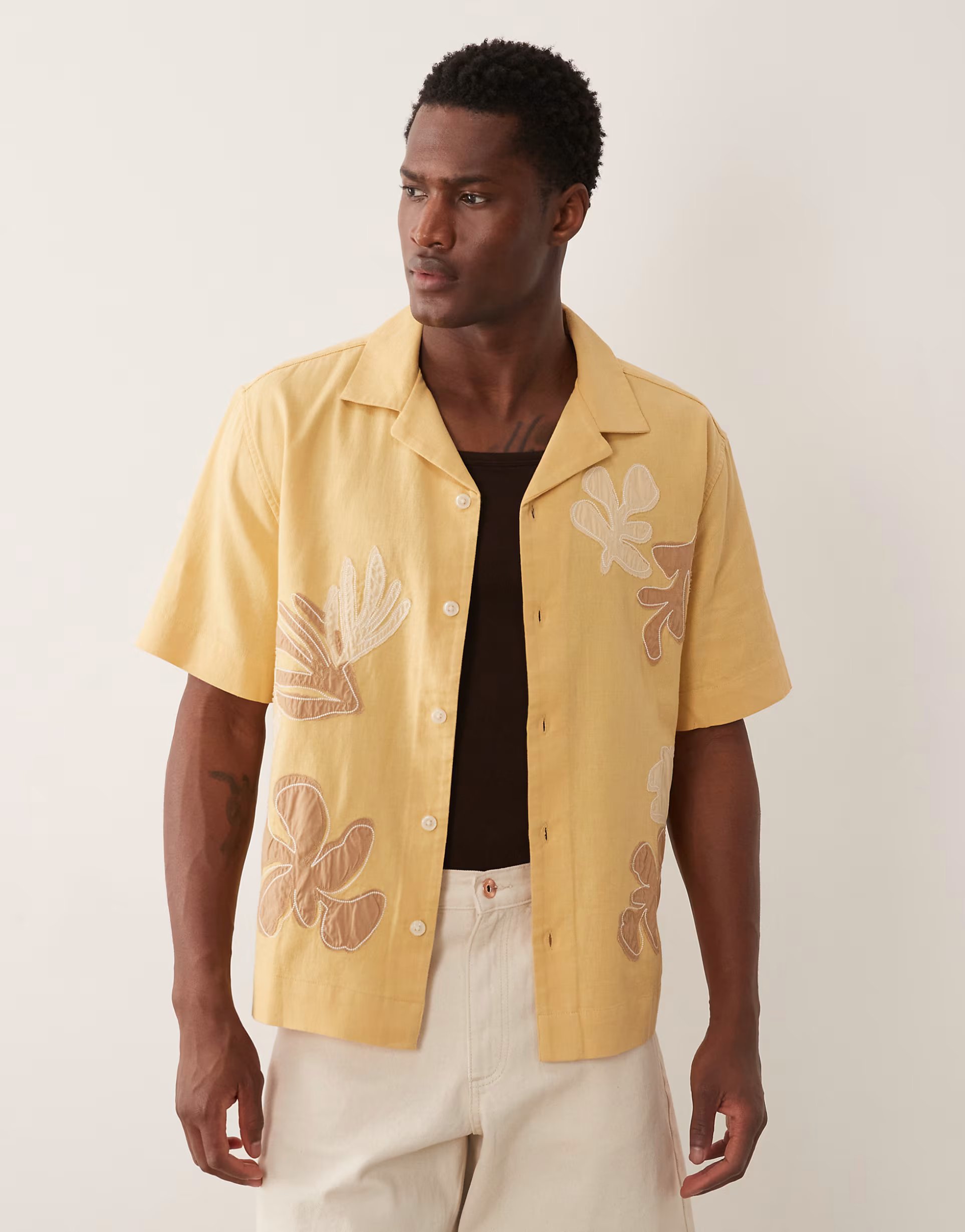 The Abercrombie & Fitch Floral Short Sleeve Shirt in Yellow is made from cotton.