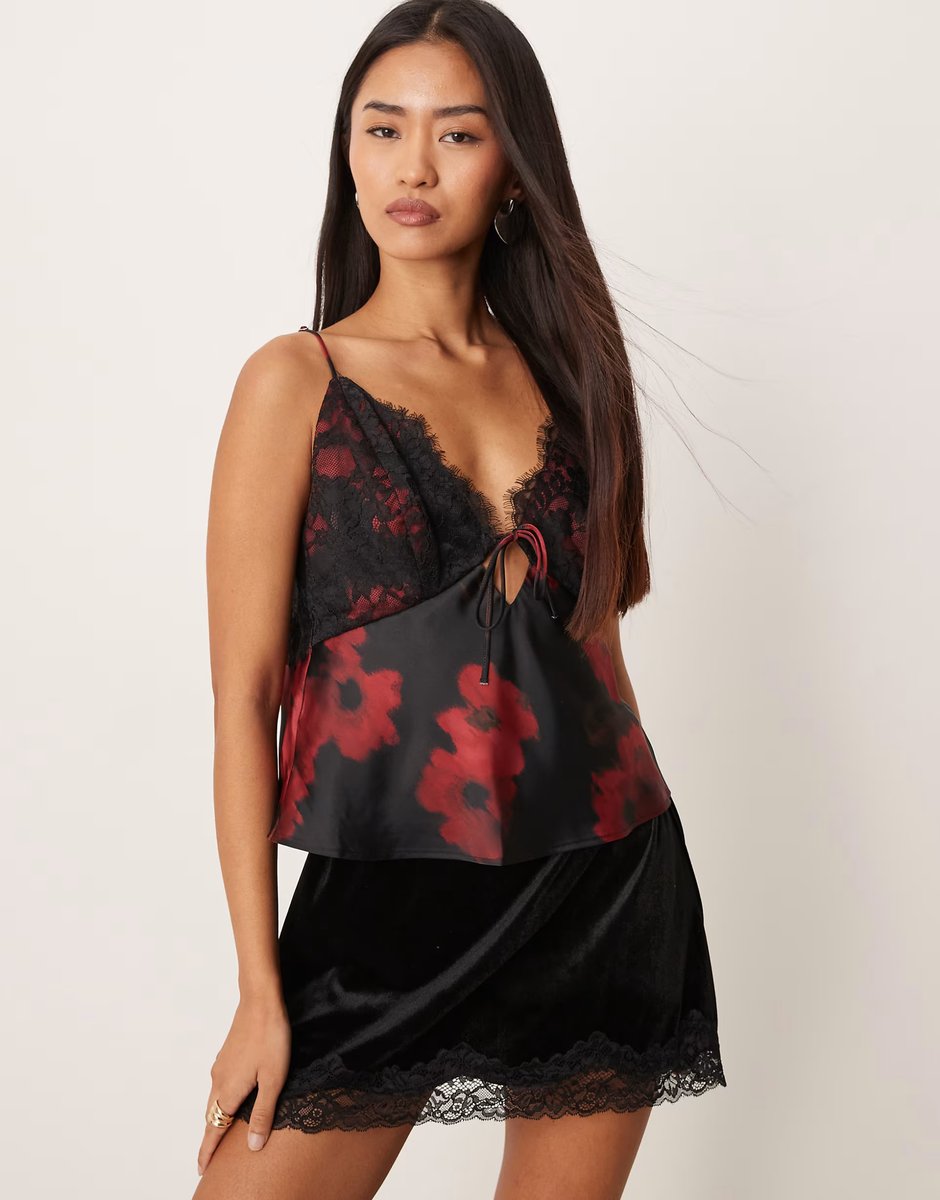 The ASOS Abercrombie & Fitch Lace Cami Top in Red Floral is ideal for casual, evening.