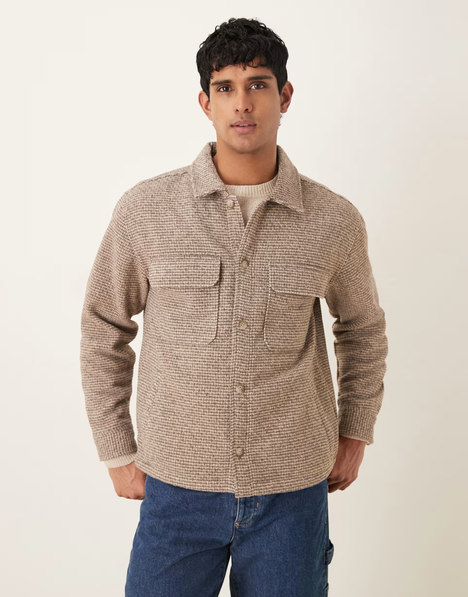 The ASOS Abercrombie & Fitch Plaid Boucle Jacket is made from boucle.