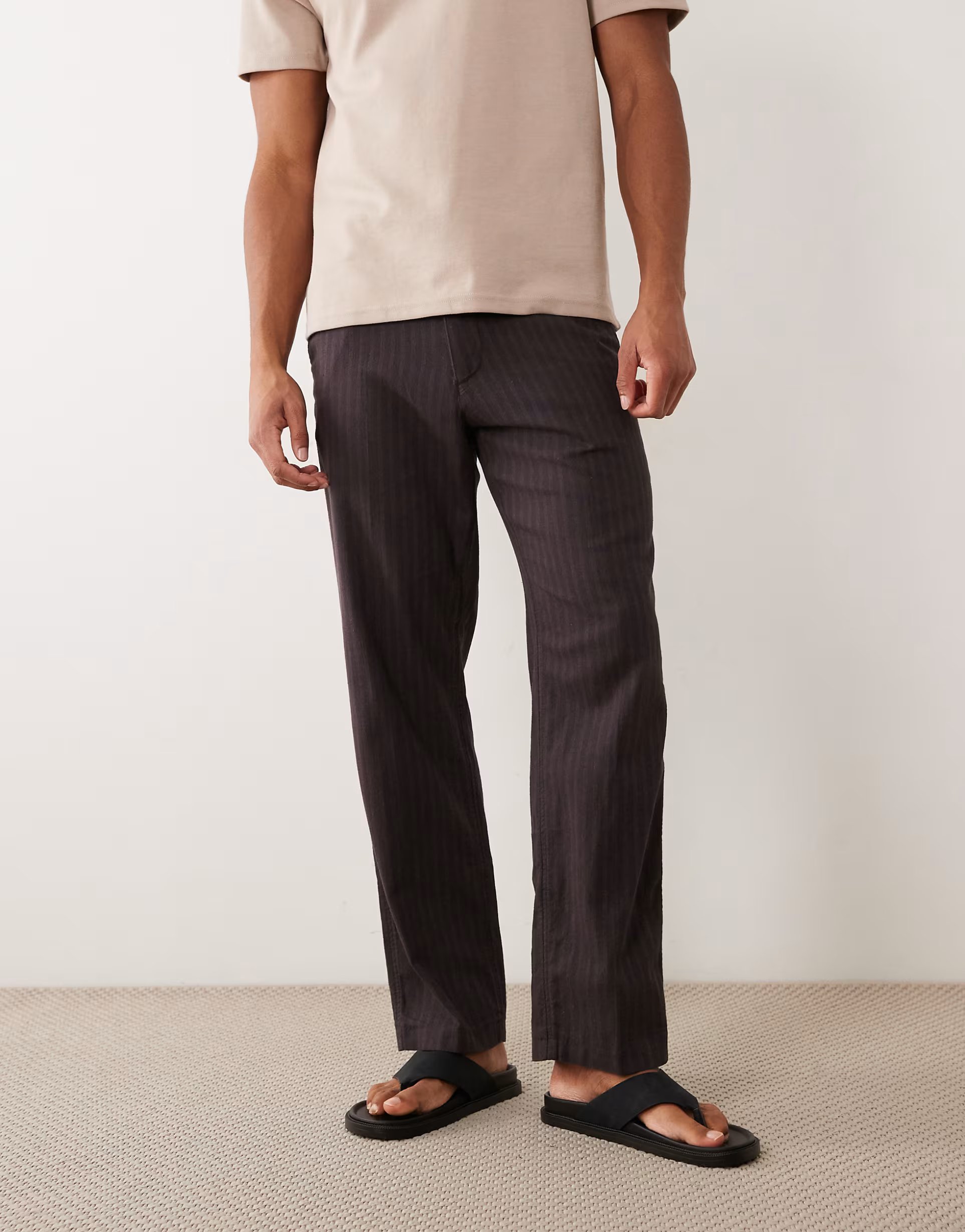 The ASOS Abercrombie & Fitch Pinstripe Smart Linen Trousers in Brown is ideal for work, weekend.