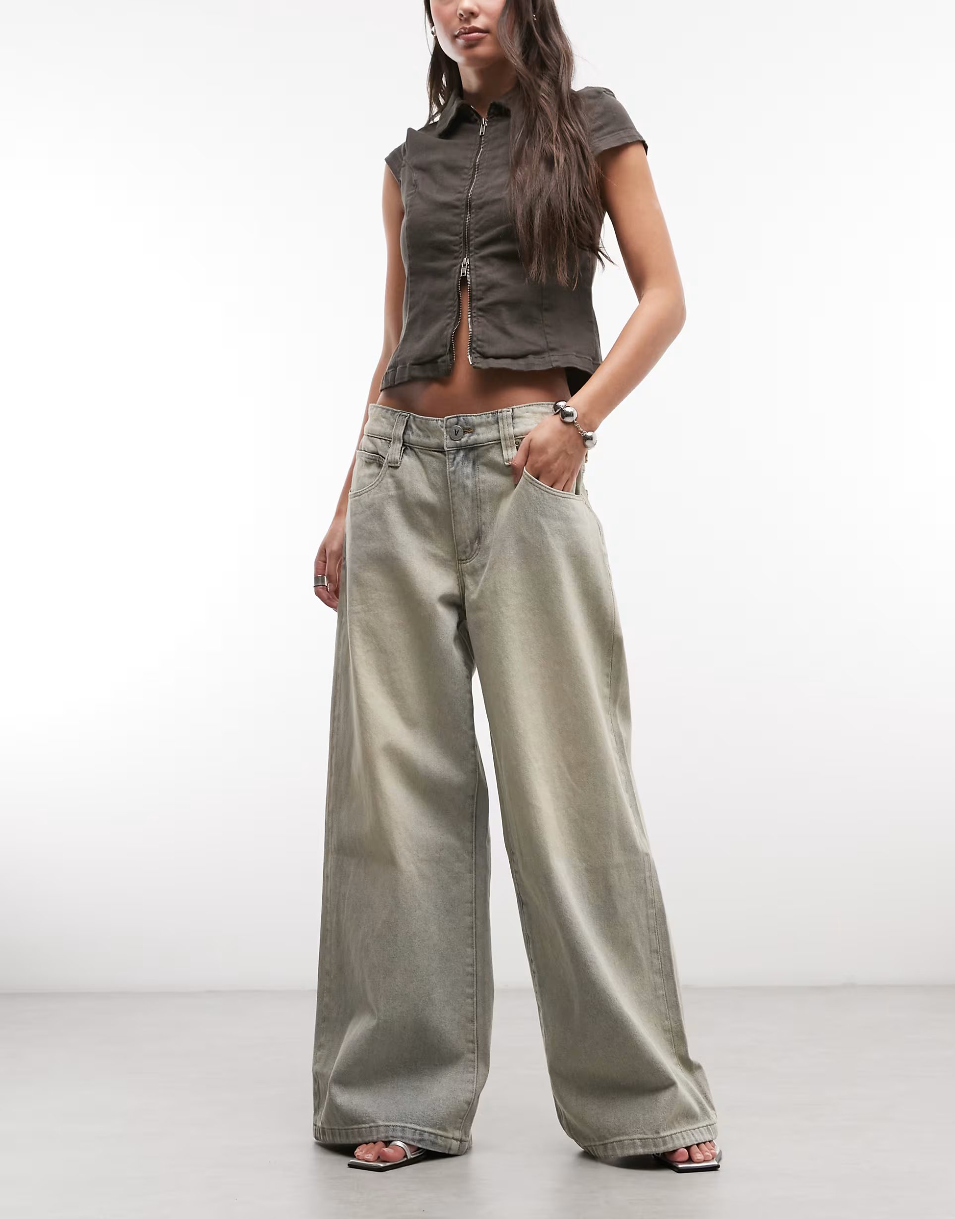 The ASOS Mega Baggy Denim Jean Co-ord in Grey is ideal for casual, weekend.