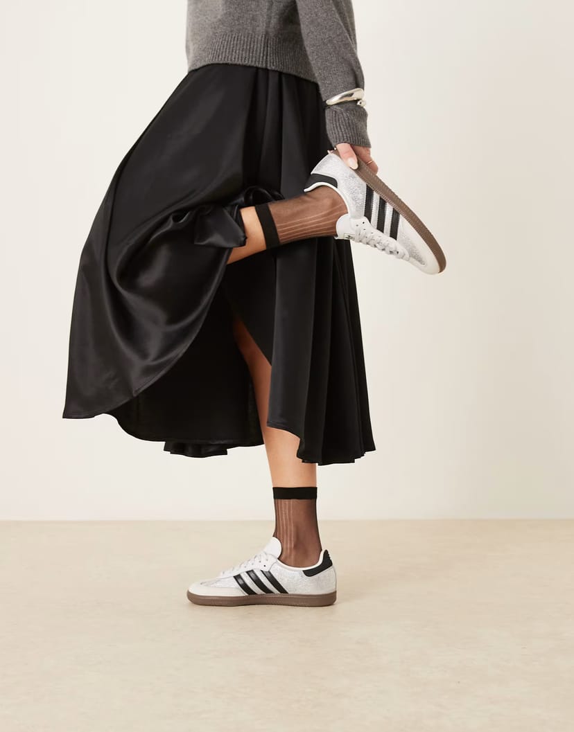 Classic adidas Originals Samba OG trainers in white and black with rhinestone embellishments. Perfect for a casual and sporty look.