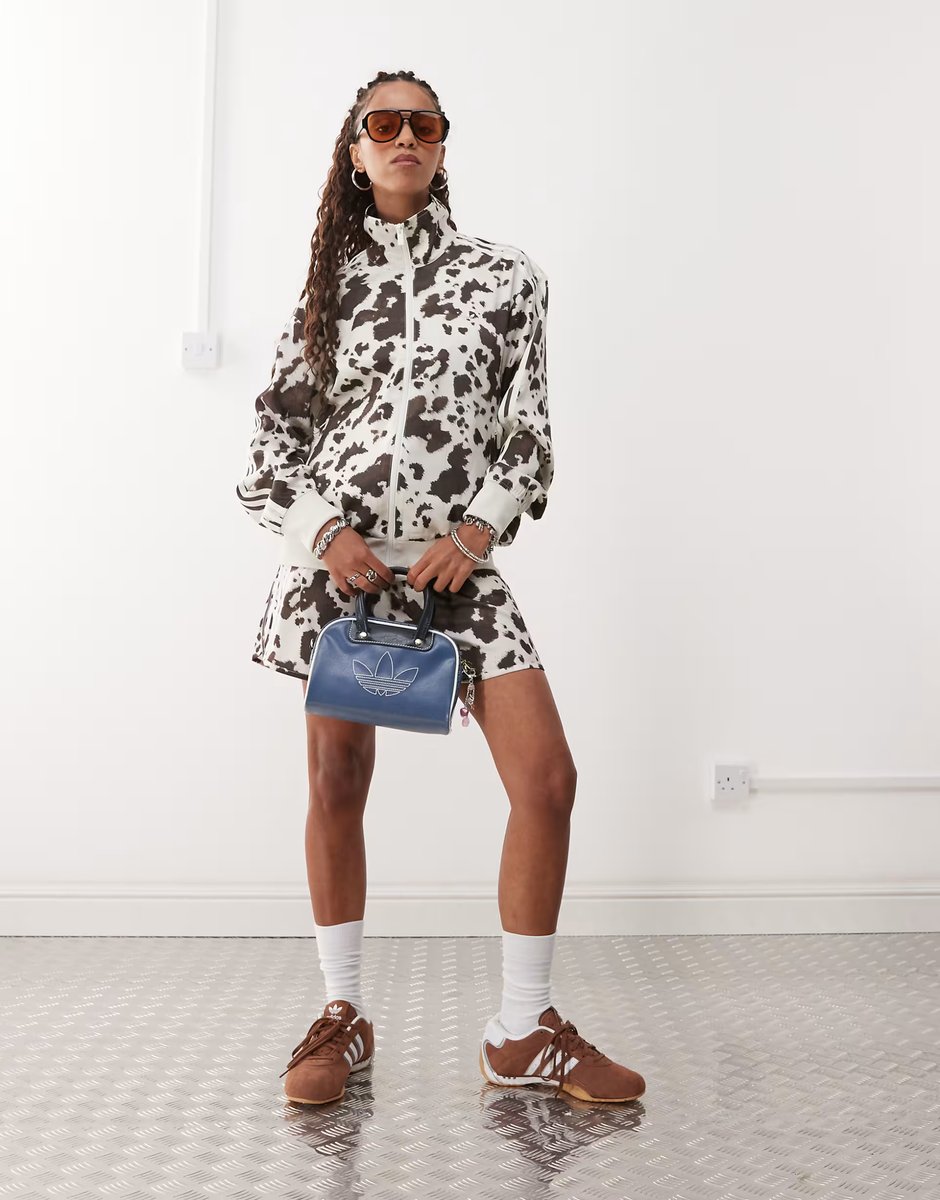 The Adidas Originals Cow Print Satin Set is ideal for casual, evening, party.