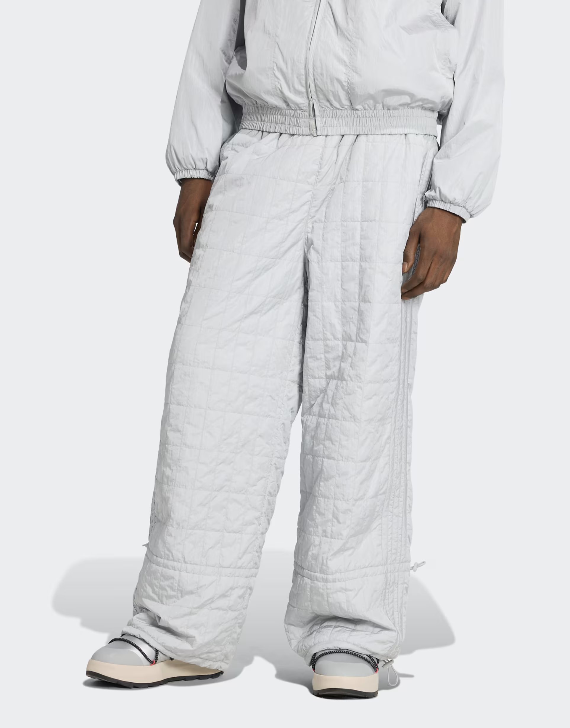 The adidas x moon boot padded pant in wonder silver offers a sleek and contemporary look. The padded design ensures warmth and comfort, making it perfect for cooler weather.