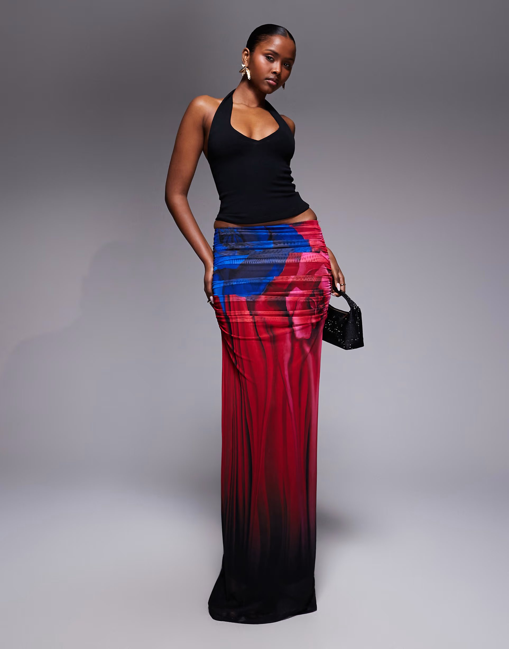 The ASOS AFRM Floral Maxi Skirt in Red Blurred Print is made from mesh.