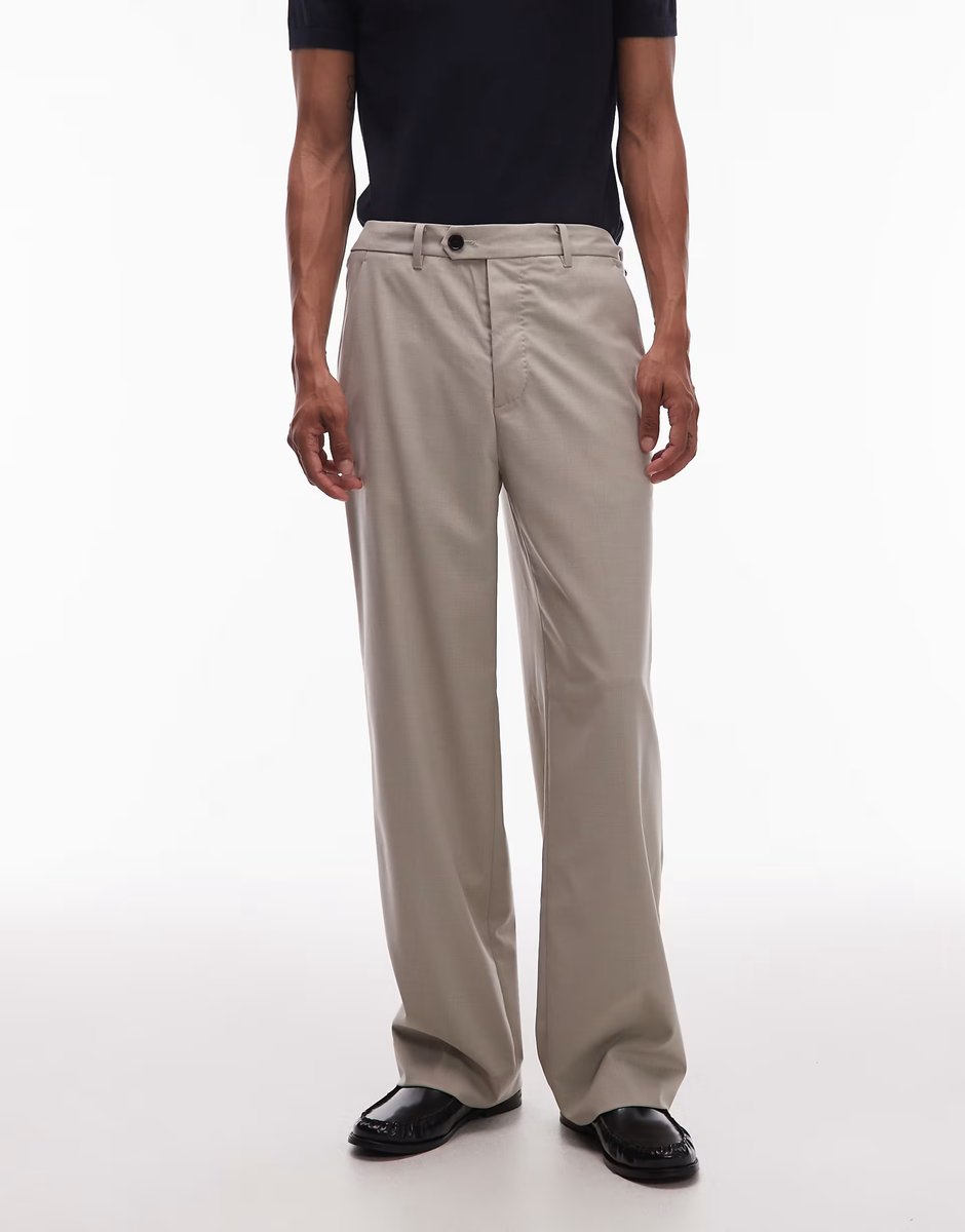Allsaints Gallow Straight Leg Tailored Trousers in taupe - STONE. A classic addition to any wardrobe, featuring straight leg fit, taupe color, and button closure. Perfect for business and casual occasions.
