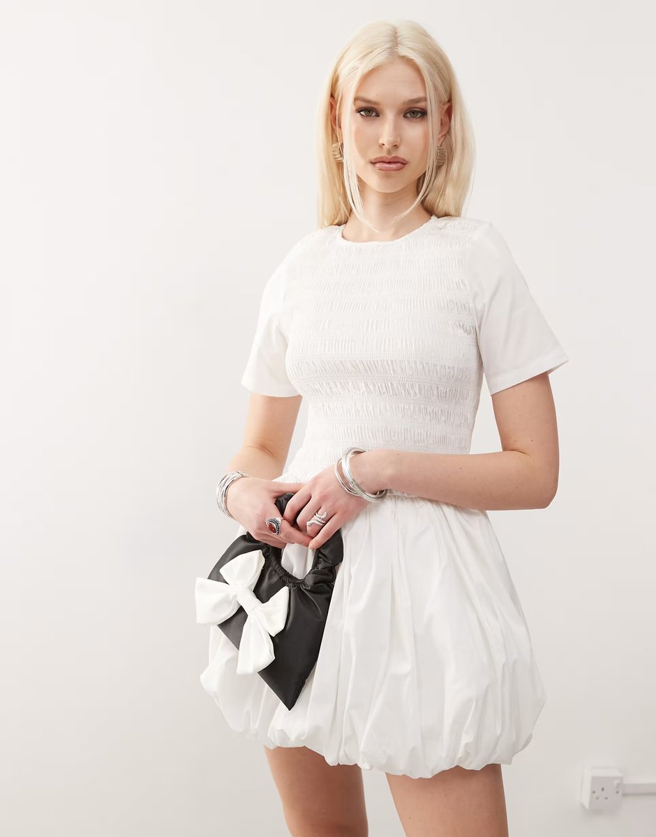 The ASOS Amy Lynn Puffball Mini Dress with Sequins in White is ideal for evening, party.