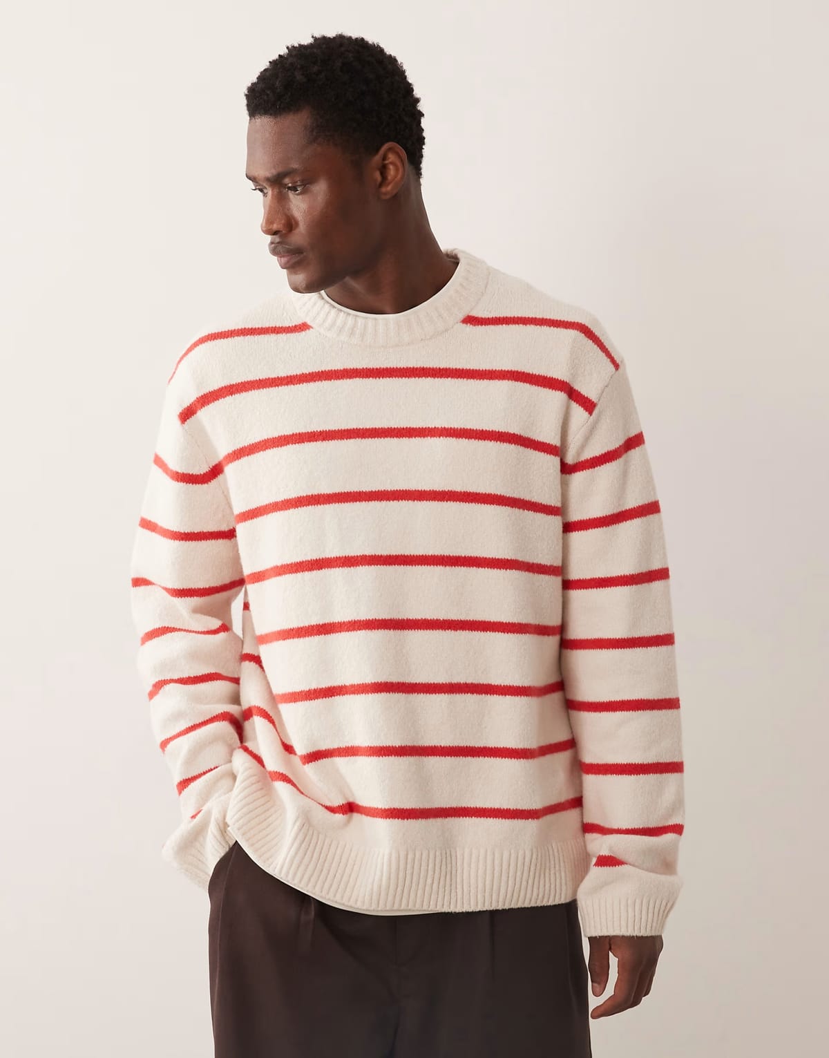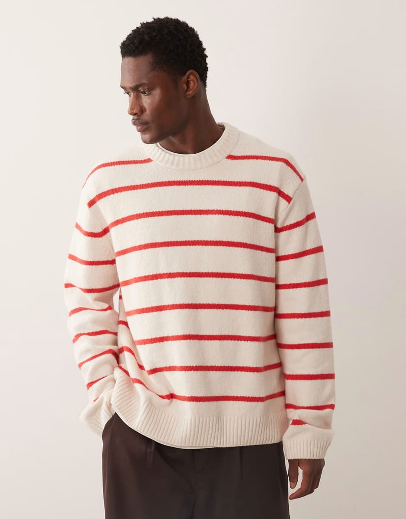The ASOS Rich Cotton Stripe Crew Neck Sweater in White is ideal for casual, smart-casual.