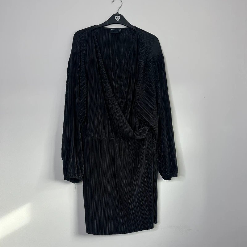 The ASOS Plisse Mini Dress in Black is available in sizes L.