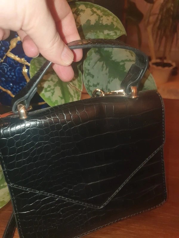 A chic, structured ASOS handbag in a glossy black croc-effect finish — the perfect everyday piece that instantly elevates any outfit. Gold-tone hardware adds a luxe touch, and the detachable/adjustable strap makes it easy to wear as a shoulder or crossbody bag.