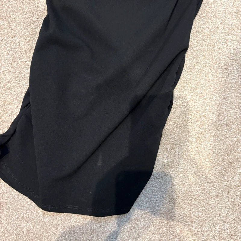 The ASOS Black Cut Out Ruched Mini Dress with Silver Heart is made from polyester, spandex.