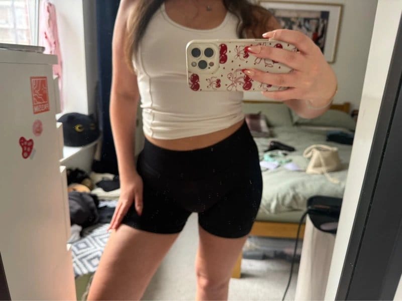 “Pair with a matching ASOS sports bra and black running shoes for a cohesive workout look.”