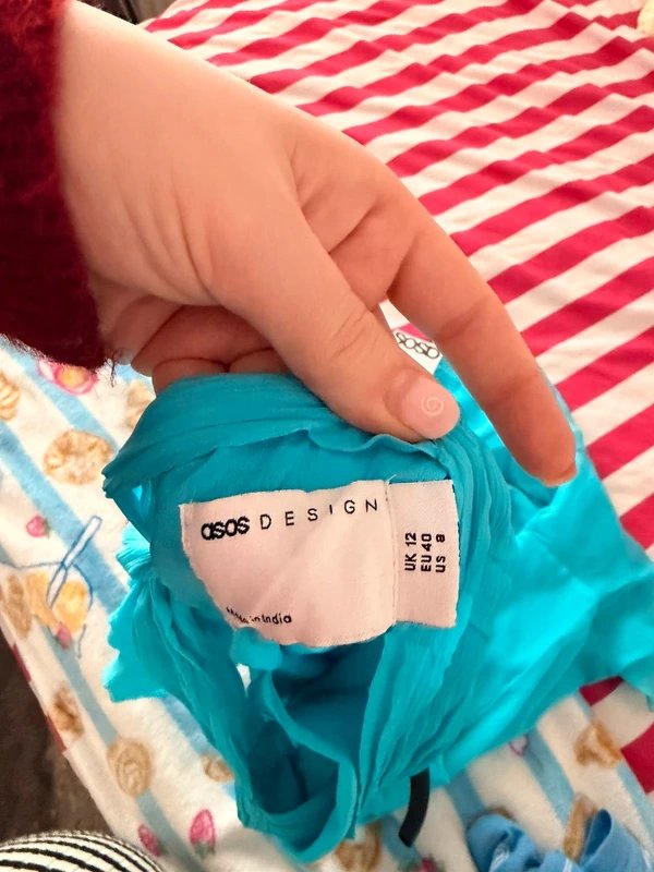 The ASOS Blue Chiffon Mini Dress with Flutter Sleeves is available in sizes M.