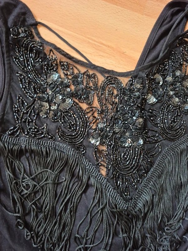“Pair with black pointed-toe ankle boots and a clutch bag for a night out.”