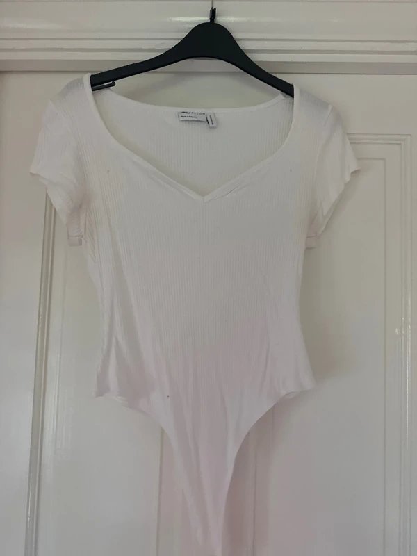 The ASOS Slim Fit Bodysuit in White is available in sizes M.